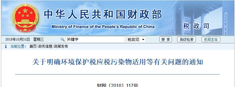 日前,财政部、税务总局、生态环境部联合印发通知,明确环境保护税应税污染物适用等问题。