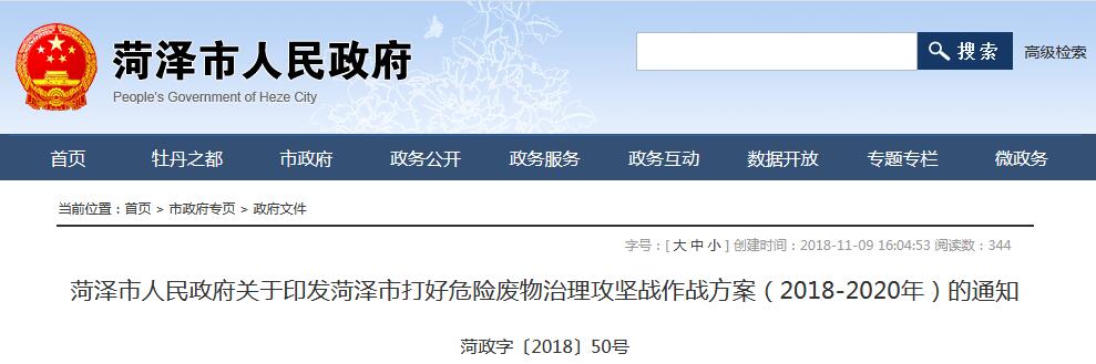 日前,菏泽市政府印发了《菏泽市打好危险废物治理攻坚战作战方案(2018-2020年)》,《方案》提出,到2020年,全市建立起较为完善的危险废物收集、贮存、运输、利用和处置体系。市级以上重点产生危险废物企业在危险废物暂贮库和危险废物产出设施位置全部安装视频监控,并与市、县区环境保护监管部门联网。危险废物处置设施布局趋于合理,处置能力与危险废物产生种类和数量基本匹配,进一步优化乡镇医疗废物收集点的建设布局,实现全市医疗废物的快速收集和集中处置,基本实现全市危险废物安全处置。危险废物规范化管理水平、环境监管能力明显提升,2018年、2019年、2020年全市及各县区危险废物规范化管理抽查合格率分别达到86%、88%、91%以上。[ 查看更多 ]