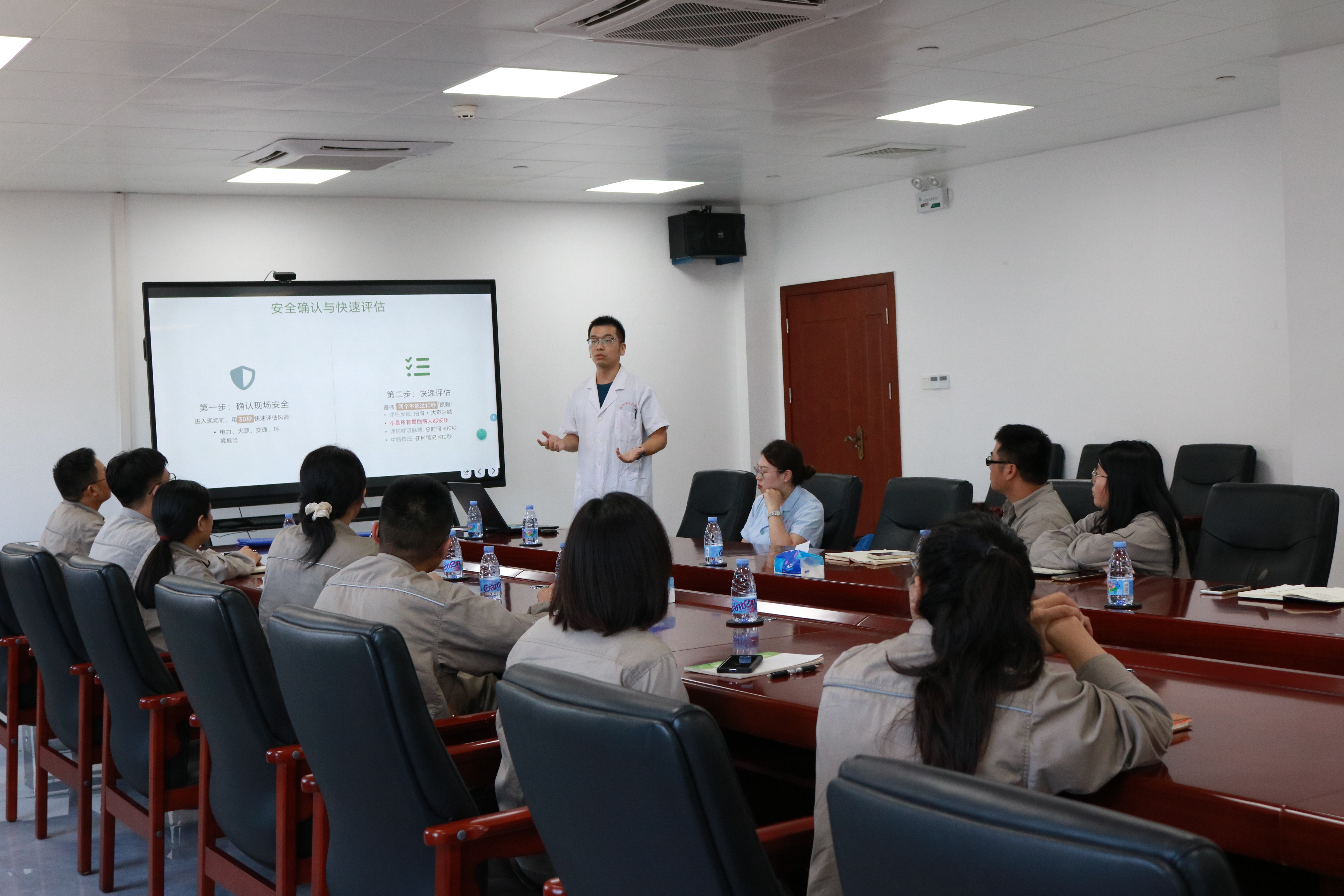 为普及应急救援知识,提升员工应对突发心脏骤停事件的应急处置能力,9月10日下午,东粤环保HSE管理部邀请揭阳市人民医院广东石化医疗站外科主任医师陈宏在205会议室开展心肺复苏术(CPR)与自动体外除颤器(AED)专项培训,公司各部门员工参与学习。[ 查看更多 ]